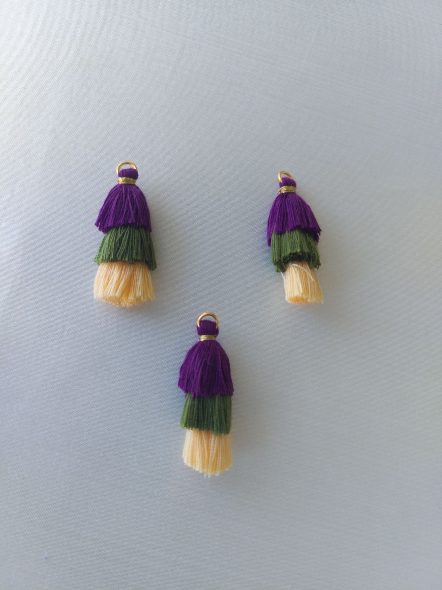 (1 adet) 3 cm Morlu Yeşilli Renk - 3 Katlı Püskül - 007