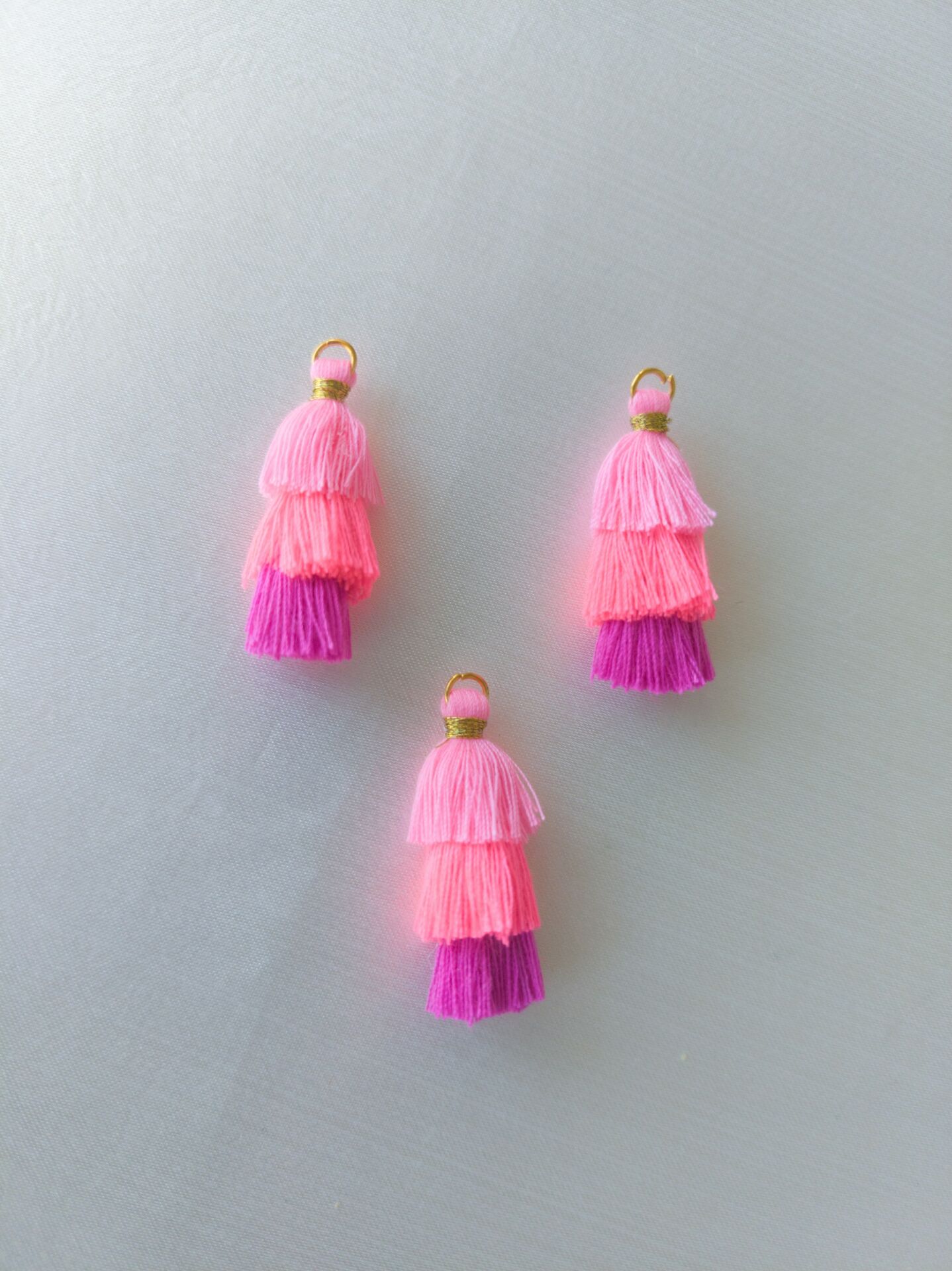 (1 adet) 3 cm Neon Pembe Renk - 3 Katlı Püskül - 004