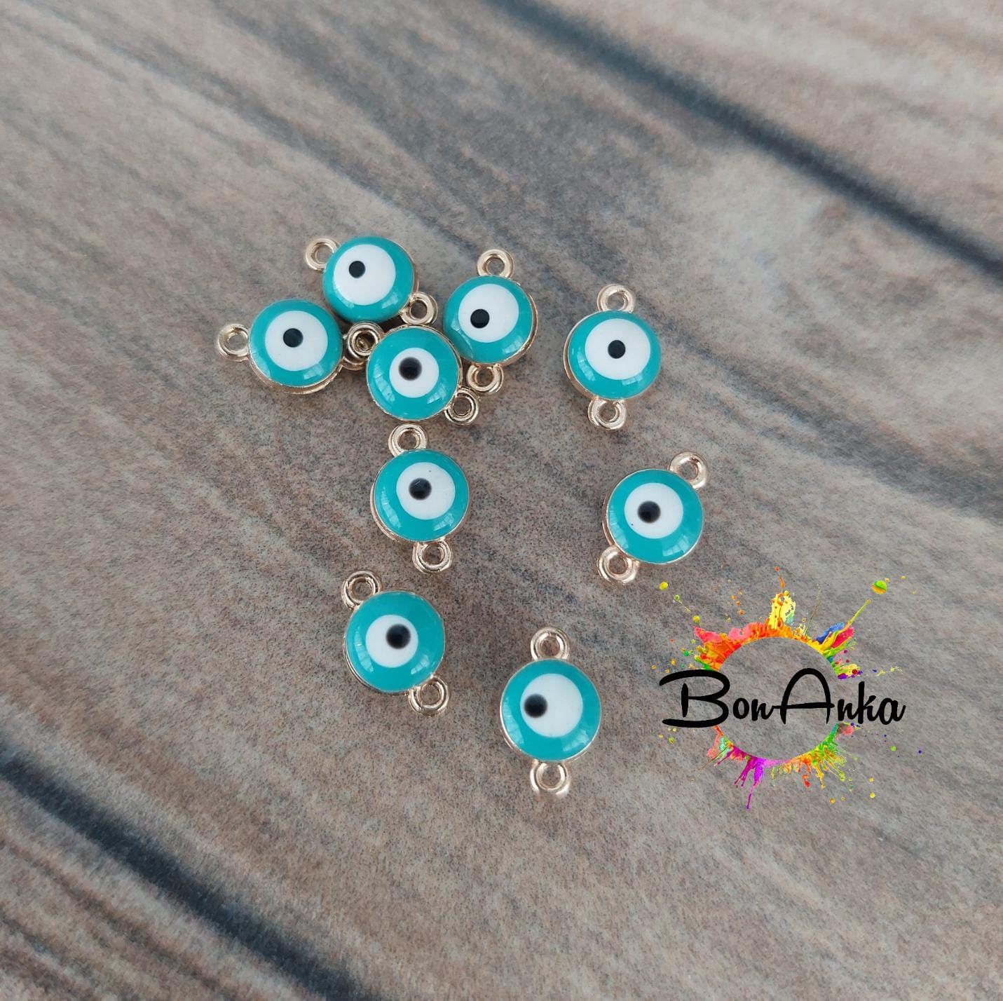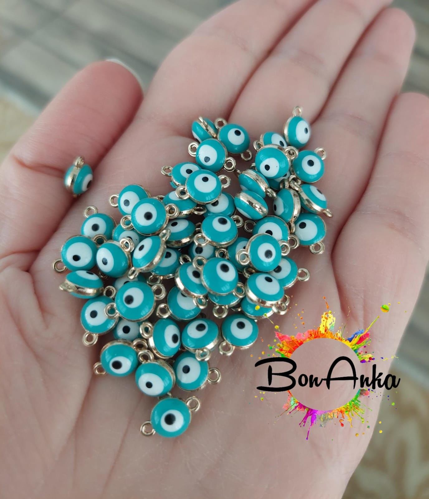(1 adet) 316 L Çelik Turkuaz Çift Kulplu Mineli Nazar