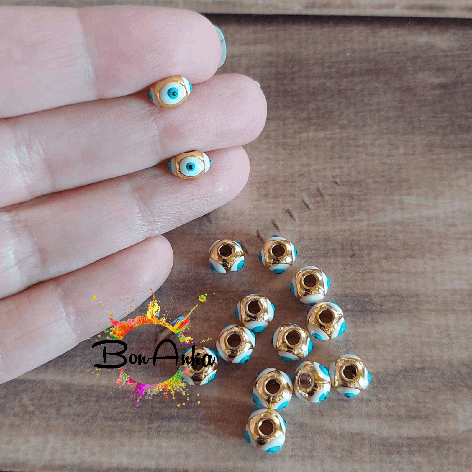 (1 adet) 8 mm Altın Kaplama Mineli Gözlü Metal Aparat