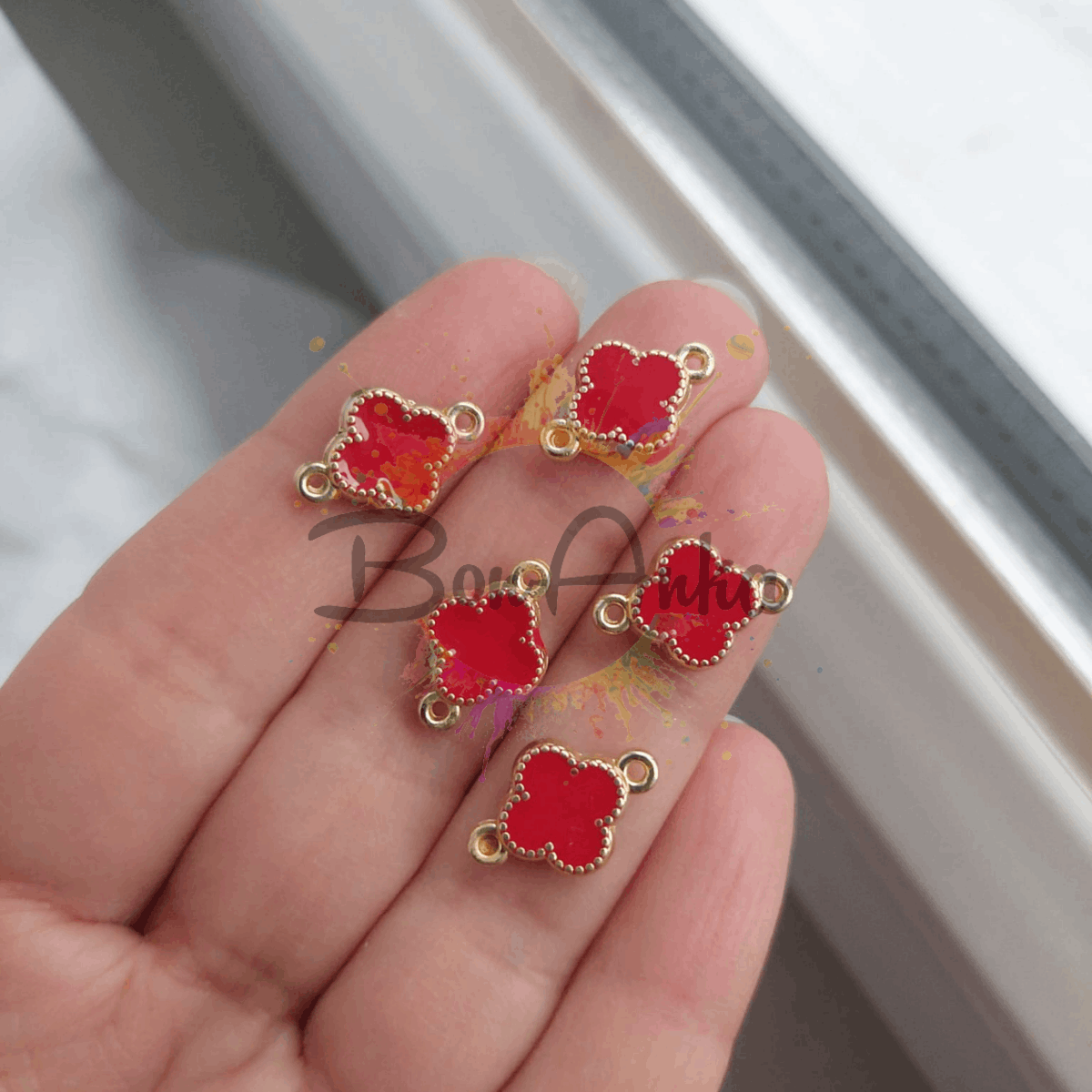 Takı tasarımlarınıza zarif ve modern bir dokunuş katmak için ideal olan 1 cm Çift Kulplu Çift Yönlü Kırmızı Yonca Ara Aparat, kolye, bileklik ve küpe yapımında sıklıkla tercih edilen kaliteli bir takı malzemesidir. 1 cm Çift Kulplu Çift Yönlü Kırmızı Yonca Ara Aparat; dayanıklı yapısı ile uzun süre kullanım sunan bu takı ara aparatı, hem amatör hem de profesyonel takı tasarımcıları için uygundur.