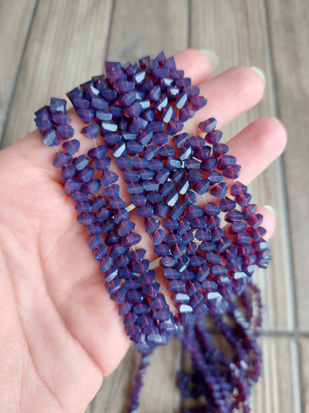 1 Dizi - Mor - Üçgen Kristal Cam Boncuk 007
