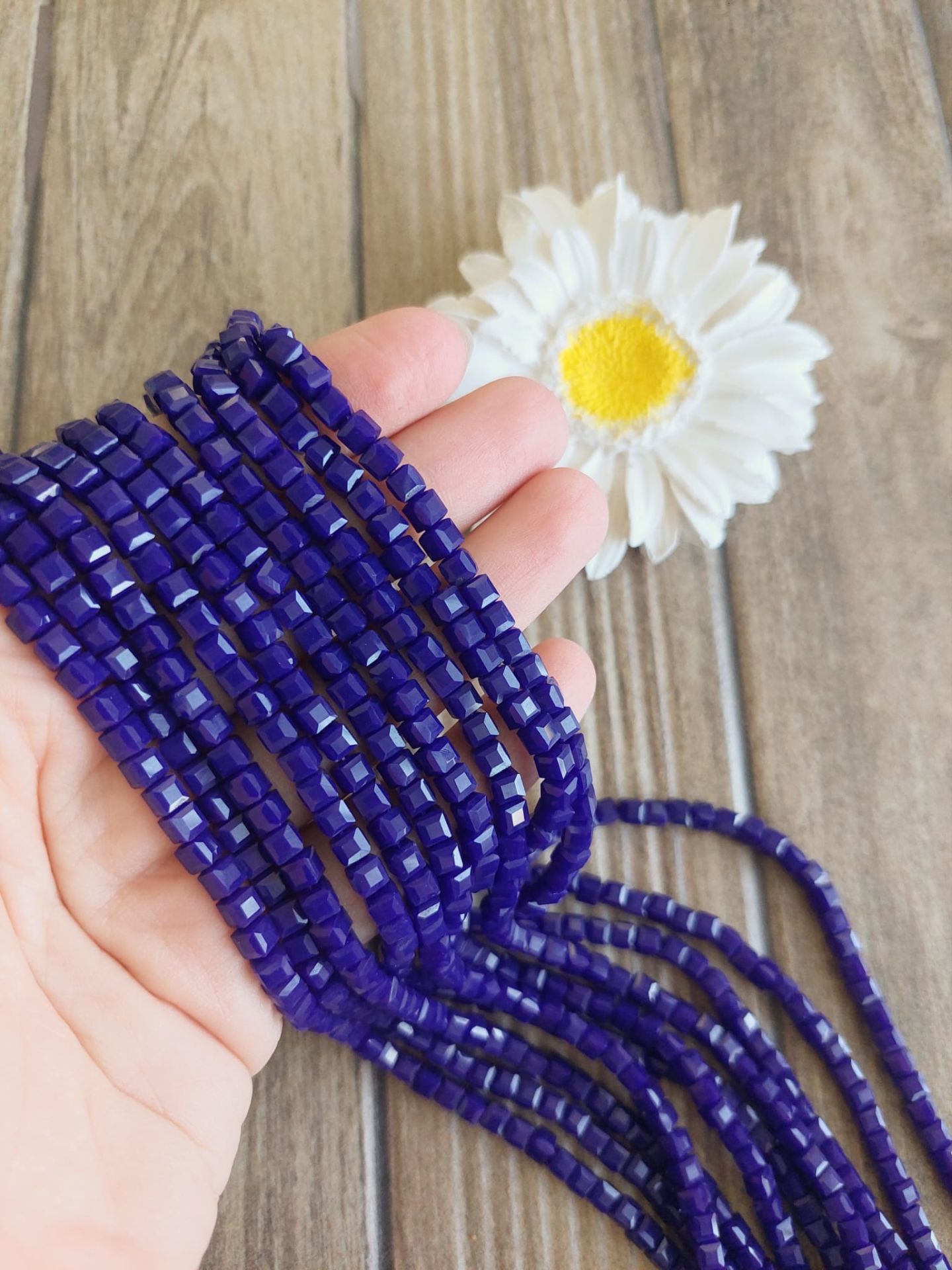 - Küp kristal boncuklar 4 mm boyundadır.