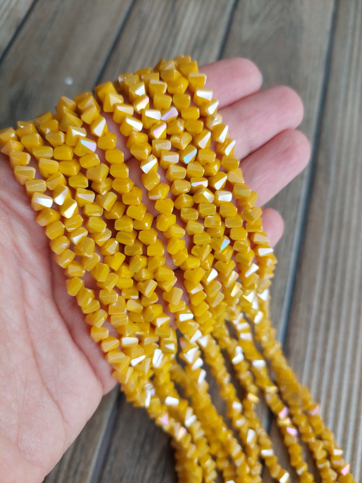1 Dizi - Turuncu - Üçgen Kristal Cam Boncuk 010