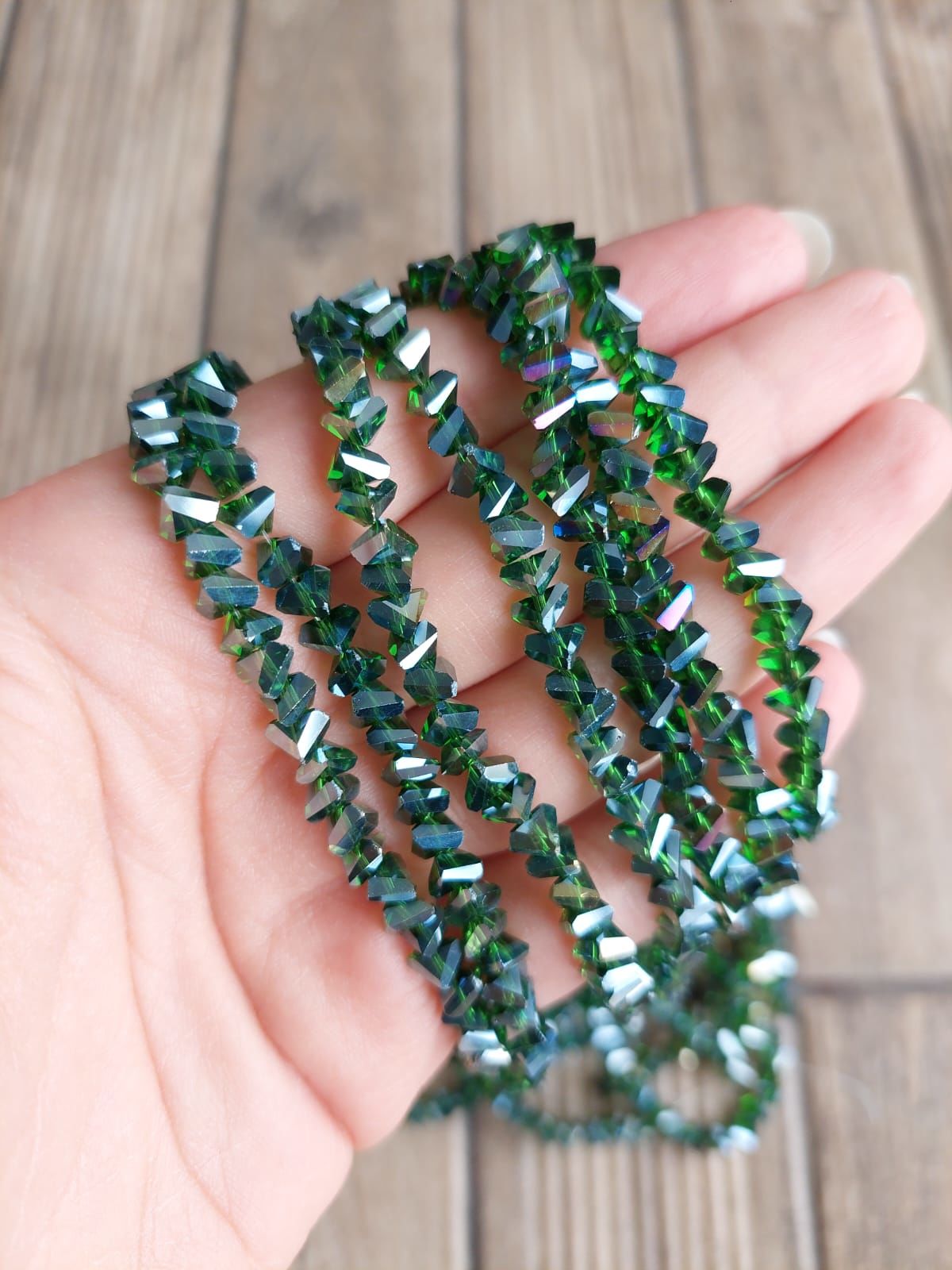 1 Dizi - Yeşil - Üçgen Kristal Cam Boncuk 005