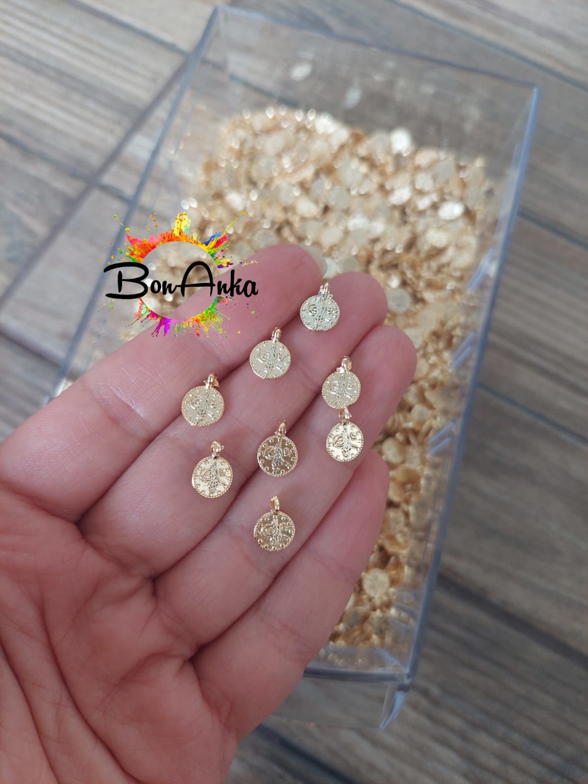 (10 adet) Tek Kulplu Döküm Tuğra, Tespih Püskül Ucu, Takı Malzemesi, Sarı Kaplama