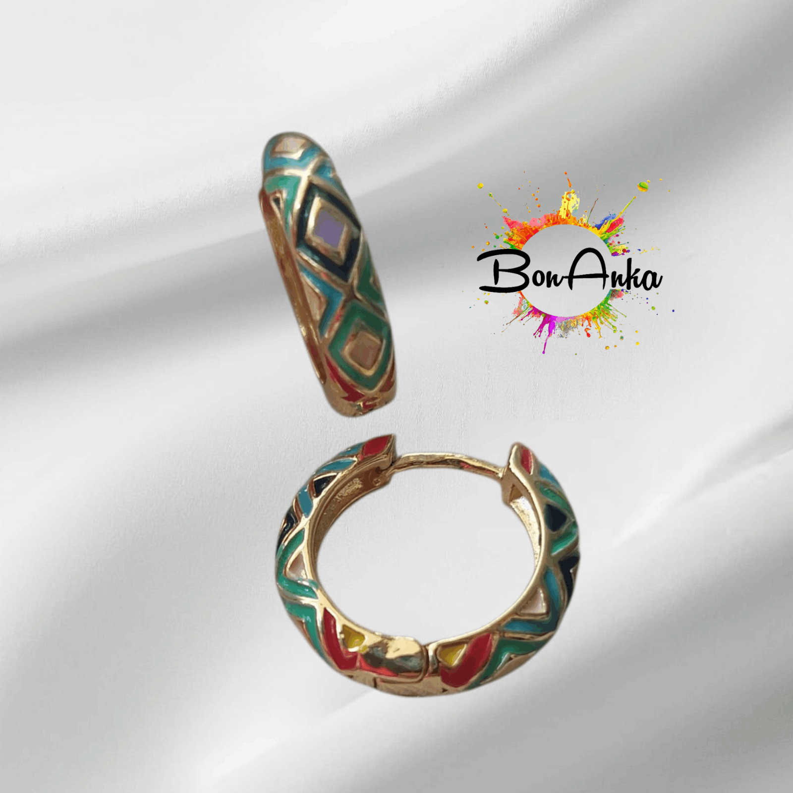 Karışık Renkli Mineli Etnik Desen Çelik Halka Küpe