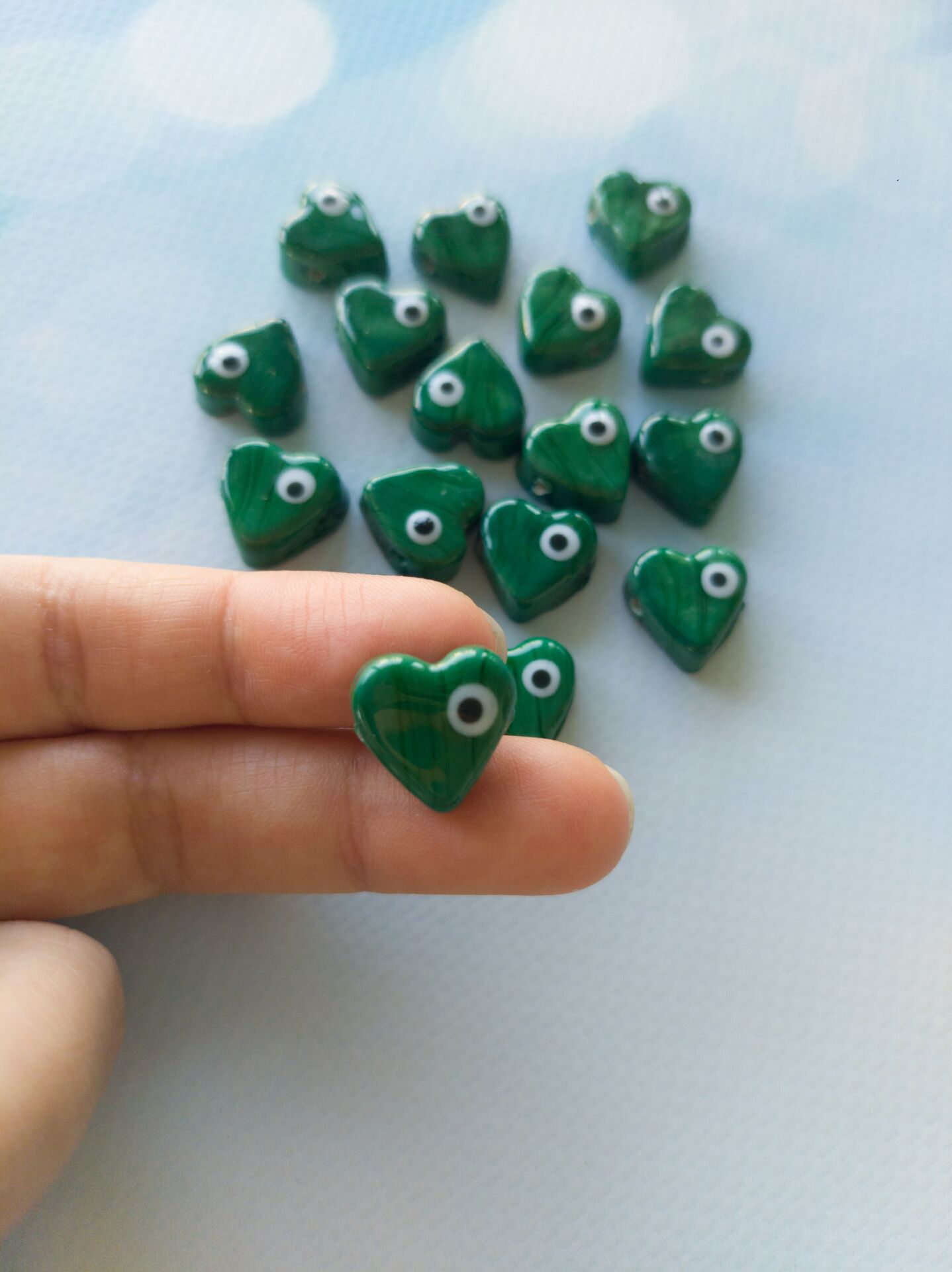 Koyu Yeşil Renk Gözlü Kalp Boncuk - 009
