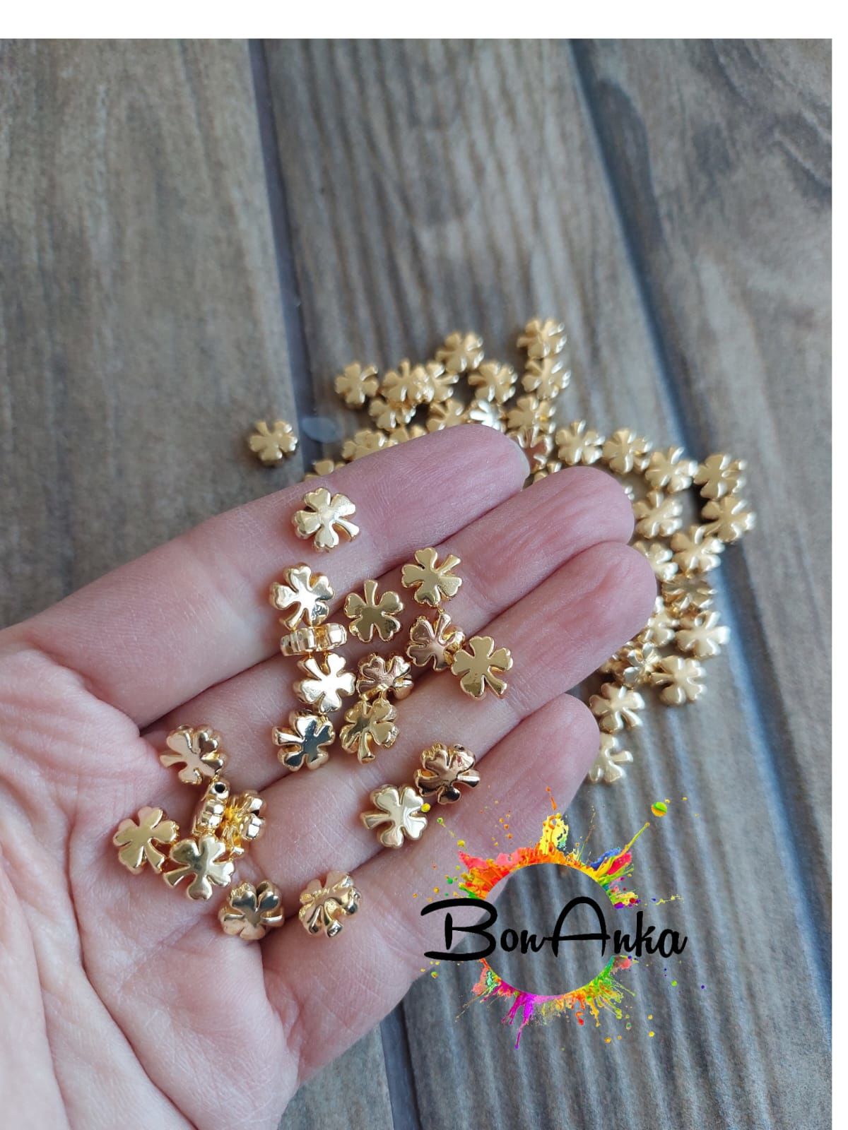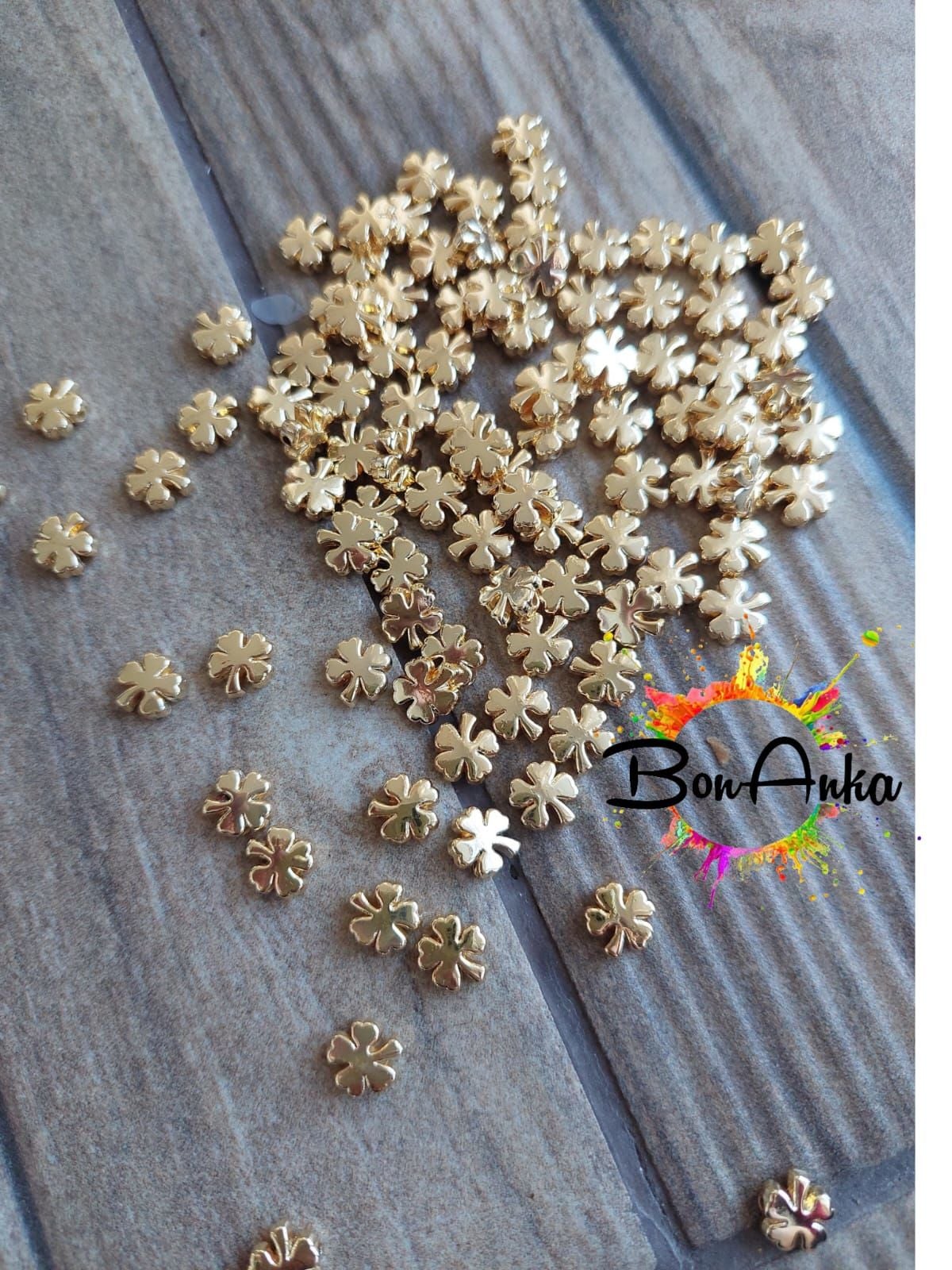 (5 adet) Altın Lak Kaplama Yonca Model Bileklik Kolye Halhal Ara Aparatı