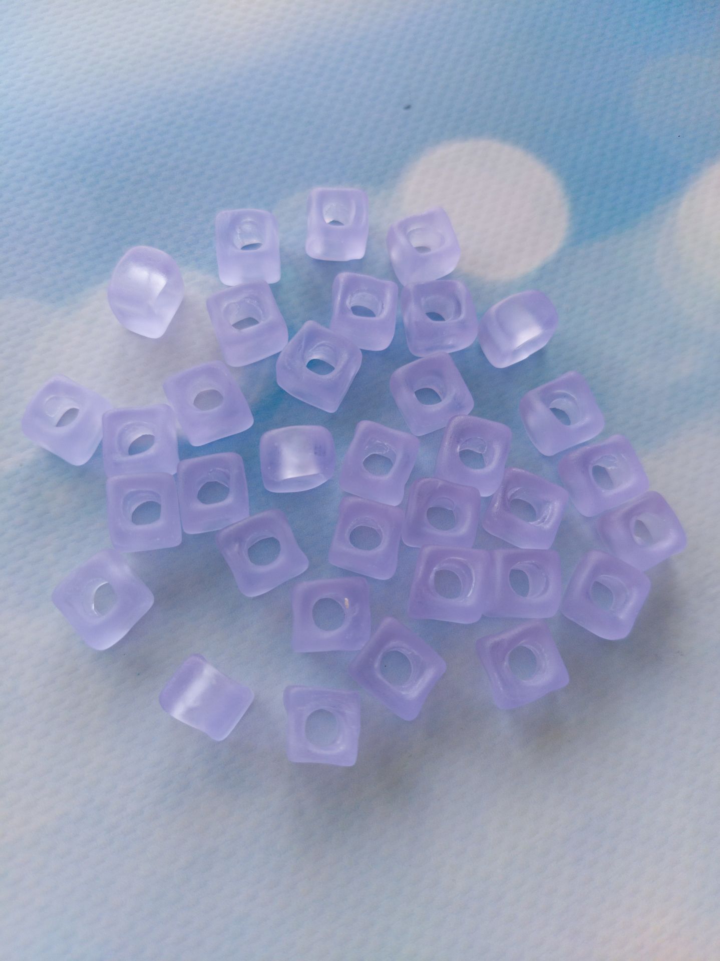 Lila Renk Buzlu Kare Cam Boncuk