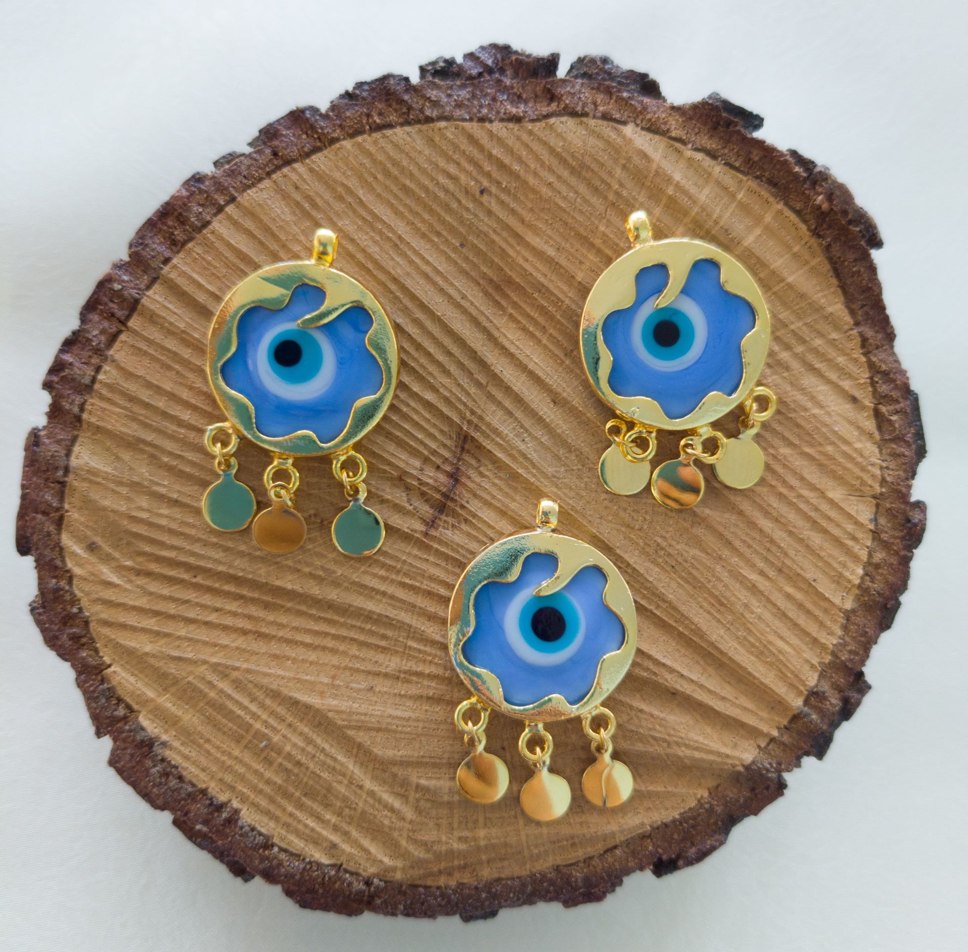 Mavili - Morlu Renk - Murano Çerçeveli Nazar Kolye ve Küpe Aparatı
