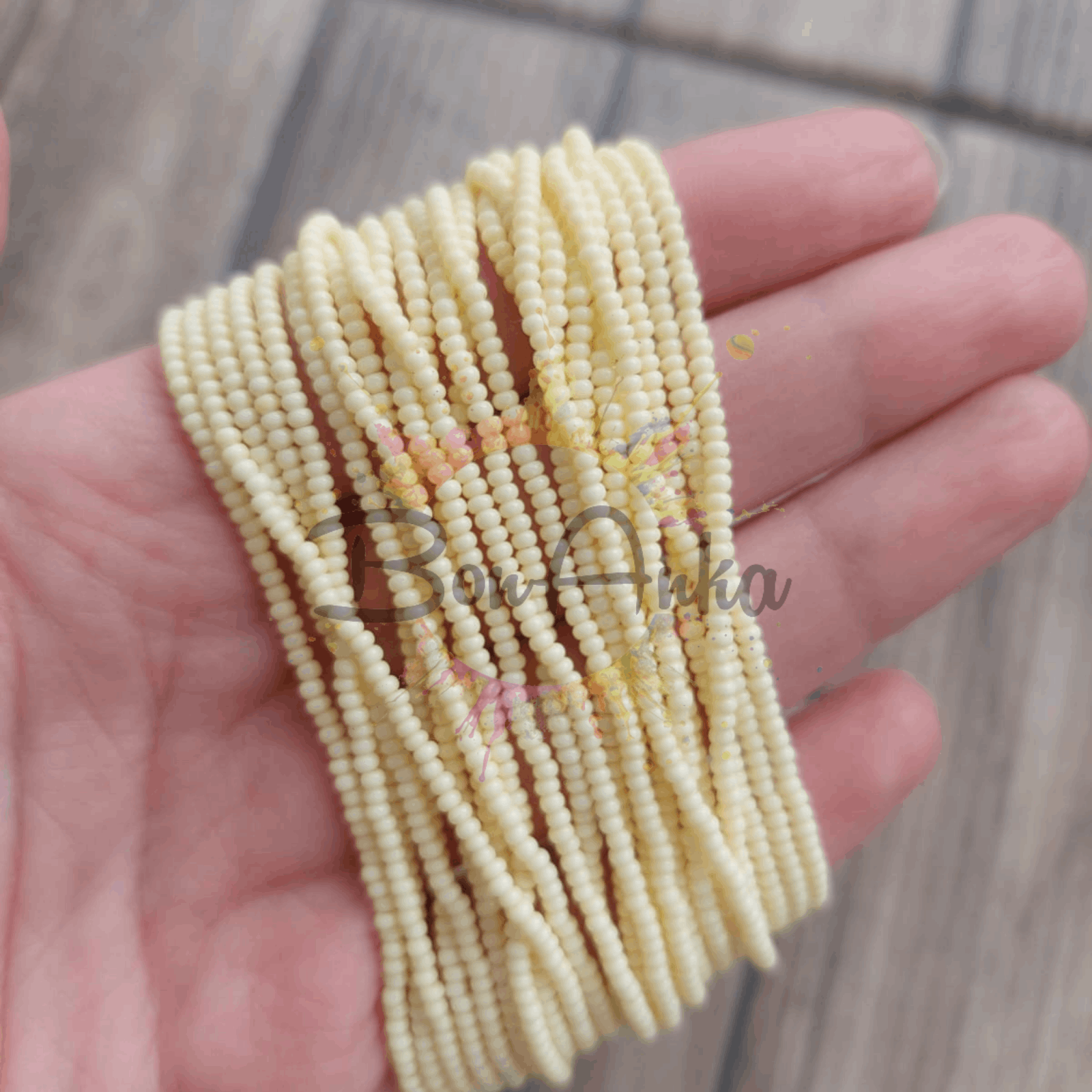 Preciosa 11/0 Dizi Kum Boncuk 03281 (010) Mat Açık Toz Sarı, yüksek kaliteli Çek camından üretilmiş orijinal bir kum boncuk modelidir. Yaklaşık 2,0 – 2,2 mm çapında olup, 0,6 – 0,7 mm delik genişliğine sahiptir. Bu ölçüler sayesinde oya, nakış, takı tasarımı ve farklı boncuk işleme tekniklerinde rahatlıkla kullanılabilir.