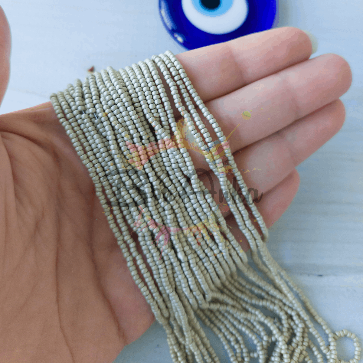 Preciosa 11/0 Dizi Kum Boncuk 18503 Mat Metalik Gümüş, yüksek kaliteli Çek camından üretilmiş orijinal bir kum boncuk modelidir. Yaklaşık 2,0 – 2,2 mm çapında olup, 0,6 – 0,7 mm delik genişliğine sahiptir. Bu ölçüler sayesinde oya, nakış, takı tasarımı ve farklı boncuk işleme tekniklerinde rahatlıkla kullanılabilir.