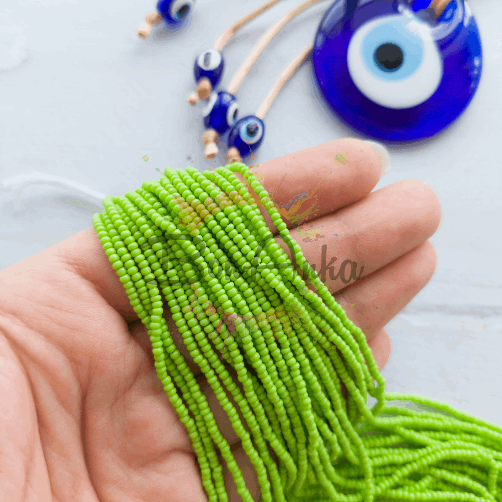 Preciosa 11/0 Dizi Kum Boncuk 53310 (047) Opak Yeşil, yüksek kaliteli Çek camından üretilmiş orijinal bir kum boncuk modelidir. Yaklaşık 2,0 – 2,2 mm çapında olup, 0,6 – 0,7 mm delik genişliğine sahiptir. Bu ölçüler sayesinde oya, nakış, takı tasarımı ve farklı boncuk işleme tekniklerinde rahatlıkla kullanılabilir.