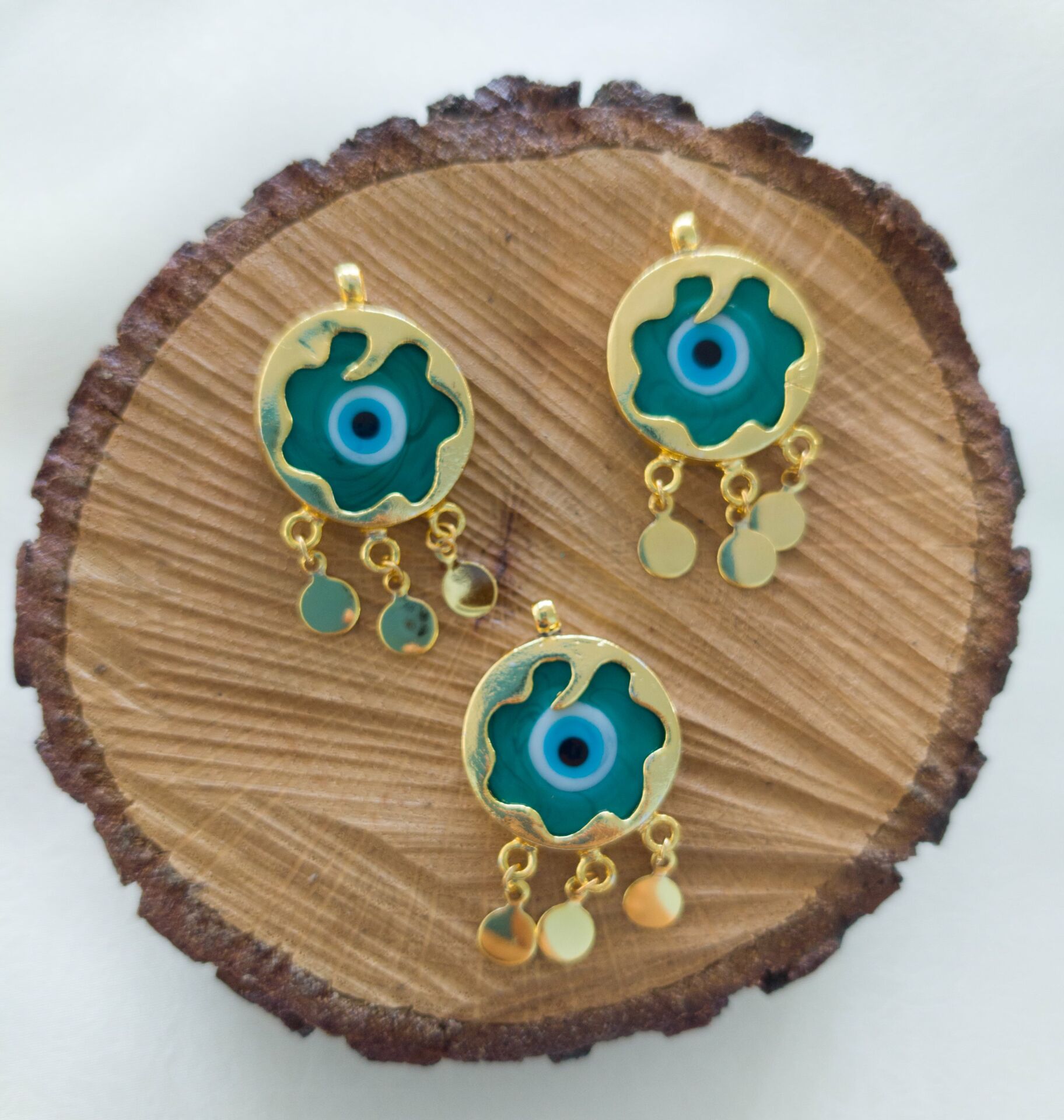Yeşil Renk - Murano Çerçeveli Nazar Kolye ve Küpe Aparatı